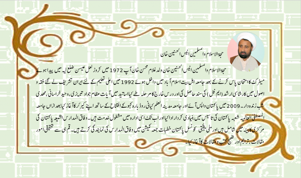 HUJJAT UL ISLAM WAL MUSLIMEEN ANEES UL HUSSNAIN KHAN