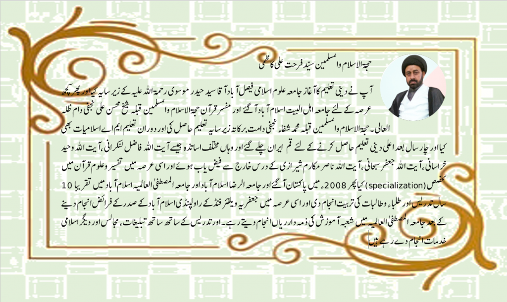 HUJJAT UL ISLAM WAL MUSLIMEEN SYED FARHAT ALI KAZMI