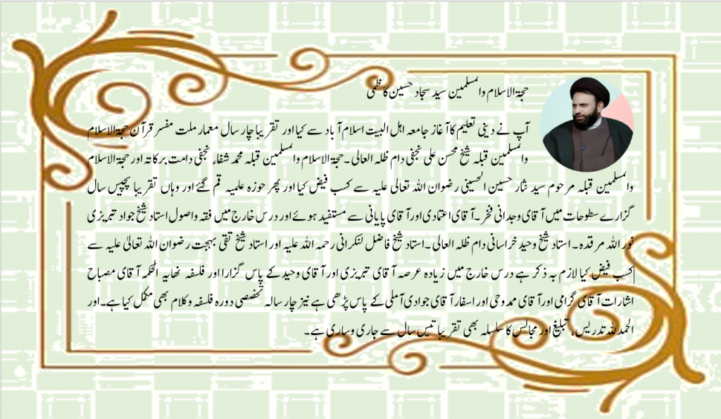 HUJJAT UL ISLAM WAL MUSLIMEEN SYED SAJJAD HUSSAIN KAZMI